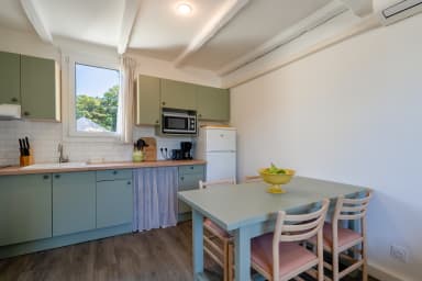 Stay cool during the hot summer days with provided air conditioning. The fully equipped kitchen allows you to prepare delightful meals using fresh local products from the nearby Provencal market.