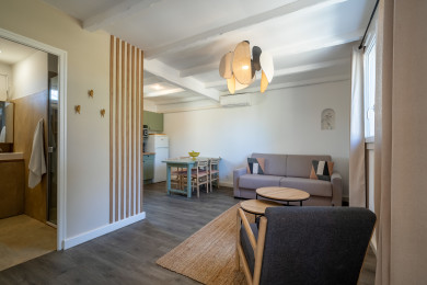 Récemment entièrement rénovée, cette retraite confortable dispose d'une chambre confortable avec un lit double de 140 cm et un lit simple. Le salon est équipé d'un canapé convertible qui peut accueillir confortablement deux personnes, pouvant ainsi loger jusqu'à cinq personnes.